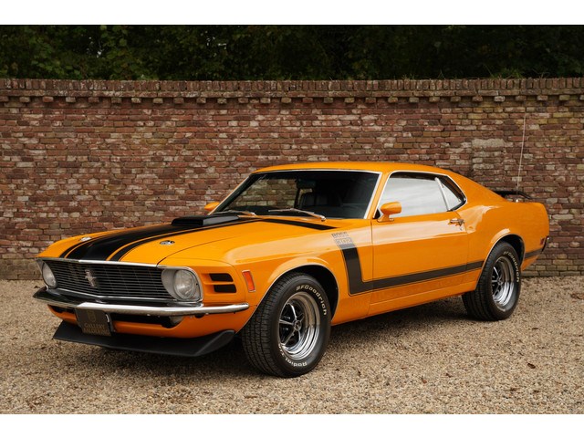 Deze schitterende Ford Mustang Boss 302 uit 1970 is volledig gerestaureerd met oog voor detail, waarbij zowel de matching numbers als de originele kleuren behouden zijn gebleven. Het exemplaar is uitgerust met een originele “Shaker Hood Scoop”, sportieve zijroosters (Sport Slats) en een achterspoiler op de kofferklep, zoals af fabriek geleverd. Deze specifieke Mustang werd ontwikkeld voor homologatie, zodat hij kon deelnemen aan de legendarische Trans Am-races, een kenmerk dat de auto, historisch gezien, een extra dimensie van exclusiviteit geeft. Tal van foto’s van het restauratieproces zijn beschikbaar, zodat u zelf kunt zien met welke zorg en precisie dit proces is uitgevoerd.