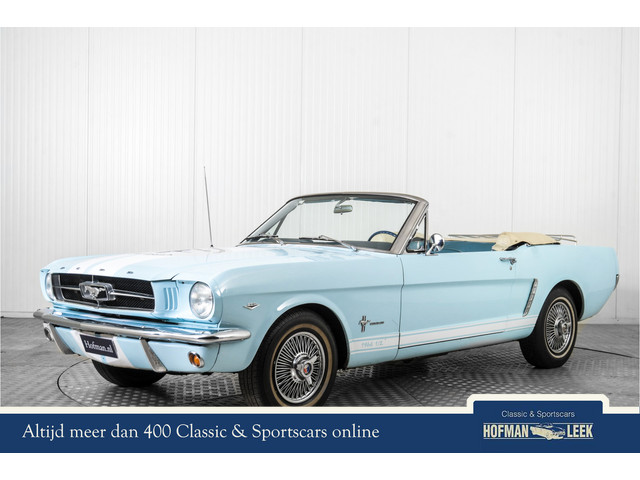 Ford Mustang Cabriolet V8 D-code. Vroege krachtpatser met stijl. De Ford Mustang Cabriolet uit 1964½ is een zeldzame en begeerlijke uitvoering van de oerversie van de iconische Mustang. Onder de motorkap ligt een 289 cu in (4.7L) V8 , goed voor zo’n 210 pk, krachtiger dan de latere C-code varianten. Als vroege productieversie, gebouwd tussen maart en augustus 1964, valt hij binnen de felbegeerde "early '65" modellen. In combinatie met de Cruise-O-Matic automaat levert deze niet alleen vermogen, maar ook verfijning en rijcomfort, ideaal voor ontspannen cruisen met open dak en diepe V8-klanken op de achtergrond. Kenmerken van deze zeldzame cabriolet: 289 V8 High Performance (D-code), Automatische transmissie (Cruise-O-Matic), voorzien van stuurbekrachtiging, chromen kofferrek, dubbel uitlaatsysteem.