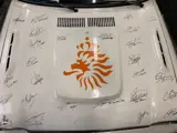 De Honda heeft daar gestaan en heeft handtekeningen verzameld, is daarvoor speciaal wit gespoten, van bekende nederlanders. De motorkap is bijvoorbeeld getekend door het nederlands voetbalelftal van 2008 inclusief de trainers, Van Basten en Van het Schip, Van der Vaart, Snijder, allemaal.... Op de rest van de auto tientallen bekende nederlanders als Vader Abraham, Jan Marijnissen, Andre van Duin, Pechtold, Peter R. de Vries, te veel om op te noemen.