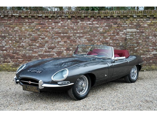 Weet u wat écht bijzonder is? Een Jaguar E-Type met een zeldzaam detail waar alleen de kenners warm van worden: de outside bonnet locks. Dat zijn de motorkapsluitingen aan de buitenkant, zoals alleen de allereerste E-Types dit hadden die in 1961 van de band rolden. Minder dan 500 stuks zijn er ooit van gebouwd. Met recht een zeldzame E-Type.