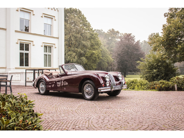 Deze in 1956 geproduceerde Jaguar XK140 is oorspronkelijk geleverd naar de Verenigde Staten in de kleur Old English White. In 1996 is de auto naar Nederland gekomen en is vervolgens volledig gerestaureerd. Deze professionele body-off restauratie is zeer vakkundig uitgevoerd door Altena Classic Service (facturen uitgebreid aanwezig) en tijdens deze restauratie is zowel het motorblok en de automatische transmissie volledig gereviseerd. Daarbij is de auto ook voorzien van stuurbekrachtiging. Ook is er voor gekozen om tijdens de restauratie de auto over te spuiten in de indrukwekkende donkerrode kleur. Het interieur is voorzien van de perfect bijpassende beige kleur. De jaren erna is de auto met zeer veel liefde en zorg onderhouden bij Jaguar specialist Kolvenbach. Het gevolg is dat deze stijlvolle Jaguar XK140 nog steeds in indrukwekkende en sublieme conditie is.