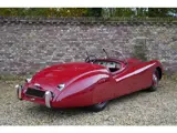 Eén van de 184 linksgestuurde lichtmetalen carrosserieën. Een prachtig gerestaureerde Jaguar XK120 in de originele kleur, weergegeven in het JDHT bestand. Chassisnummer '59', dus een vroeg exemplaar. Verder is deze Jaguar XK voorzien van prachtige stalen wielen in de kleur van de carrosserie en zijn de achterwielen aan de achterzijde bedekt met fantastische ‘wheel spats’. Dit maakt de geweldige carrosserie nog mooier dan hij al is. Ook zijn deze vaak niet aanwezig omdat ze niet passen in combinatie met spaakwielen. Deze auto is zeer goed onderhouden, ook aan de onderzijde is hij zeer schoon en netjes.