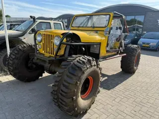 Rock Crawler (monstertruck) terrein wagen, hoe je het wilt noemen. Kort samen gevat auto is afkomstig uit belgie het chassis en kenteken zijn afkomstig van een CJ7 het kenteken wat bij de advertentie staat is niet van deze auto maar was geen andere manier van adverteren. Er ligt een 545 bigblock in met tranmissie. De assen zijn afkomstig van een unimog en noem zo maar op, er is heel veel werk in gestoken maar zou moeten worden afgemaakt. Hij is zeer groot en lomp en trekt zeker heel veel aandacht