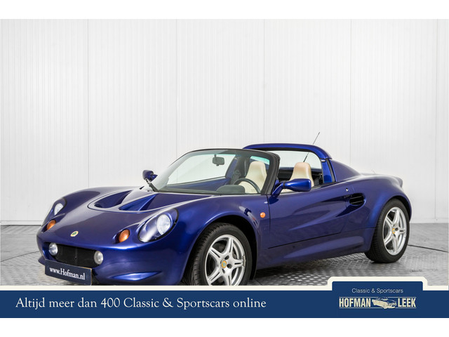 Een mooie Lotus Elise S1 in het azure blauw uitgevoerd.! Dit exemplaar verkeert zowel optisch als technisch in een keurig verzorgde conditie. De kunststof body is gespoten in schitterende Azure blauwe metallic lak, zowel body als lakwerk zijn strak en het geheel is een lust voor het oog. Enkel het noodzakelijke kreeg een plek in het interieur, dit uiteraard om het totale gewicht zo laag als mogelijk te houden. De met beige leder beklede stoelen bieden een fantastische zit, ook langere bestuurders kunnen prima terecht in de Lotus Elise. Het gaat hier om een links gestuurd exemplaar. De Elise is door ons omgebouwd naar links gestuurd in 2009. Op de teller staan slechts 38.200 miles. Een Lotus Elise is tevens een interessante belegging. De Lotus Elise is een door Lotus gebouwde lichtgewicht open sportwagen. Deze innovatieve sportwagen werd gepresenteerd op de Frankfurt Motor Show van september 1995 (aanvankelijk onder projectnaam M1-11) en was de redding voor Lotus. De auto heeft een gelijmd aluminium chassis, dat erg stijf is. De carrosserie bestaat uit polyester. Het lage gewicht van de auto (initieel rond de 700 kg) zorgt voor een hoge wendbaarheid en snelle acceleratie. Met onderhoudshistorie.