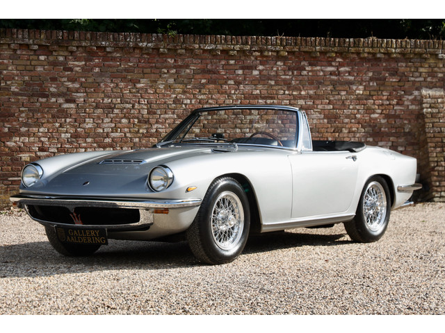 U kijkt hier niet naar zomaar een klassieke Maserati. Dit is een Mistral Spyder 3700 uit 1965 en dat maakt hem al bijzonder. Maar dit specifieke exemplaar is af-fabriek geleverd met het stuur rechts, en daar zijn er slechts twaalf van gebouwd.