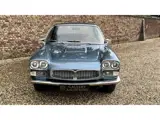 Inmiddels is de auto onlangs volledig gerestaureerd en vanzelfsprekend opnieuw gespoten in deze prachtige, stijlvolle lichtblauwe metallic lak. Chroomwerk, verlichtingsdelen en zaken als wielen en ramen: de Quattroporte maakt een uitzonderlijk fraaie indruk.