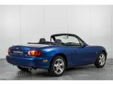 De wereldberoemde Mazda MX-5 van de tweede generatie in wellicht de mooiste uitvoering! Ter ere van de tiende verjaardag die de Mazda MX-5 mocht vieren werd de 10th Anniversary editie uitgebracht in een oplage van 7500 waarvan dit exemplaar nummer 3308 is. Allen werden uitgevoerd in donkerblauwe metallic lak en een luxe interieur met stoelbekleding in half leder en half suède. Onder de motorkap ligt de bekende 1800 cc krachtbron goed voor 140 pk en aangesloten op een handgeschakelde versnellingsbak met 6 gangen. Standaard bij het 10 The Anniversary pakket , was het onderstel voorzien van Bilstein schokbrekers. Het geheel maakt een volbloed roadster met een laag gewicht en achterwielaandrijving maar wel zeer compleet en luxe uitgevoerd. Voorzien van de originele verchroomde lichtmetalen wielen en uitgebreide onderhoudshistorie.. Het gedrag op de weg is grandioos en uiterst stabiel, een heerlijke young timer !