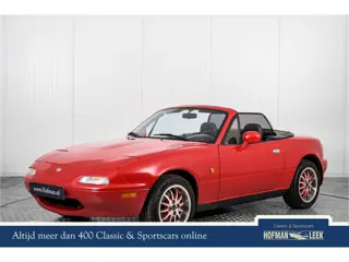 Toonaangevend voor de negentiger jaren en absoluut een young-timer van formaat: In sublieme conditie verkerende Mazda Miata uit februari 1990. Het hier aangeboden exemplaar werd voor de Europese markt gebouwd, deze uitvoeringen werden MX-5 genoemd , voor de Amerikaanse markt kregen ze de naam Miata . De carrosserie verkeert in een keurige, strakke en zeer gave conditie Absoluut een lust voor het oog! Het nog originele interieur blinkt uit door eenvoud en enkel het hoogstnodige werd in het ontwerp meegenomen. Op de teller staan slechts 148000 kilometers. De opklapbare koplampen zijn kenmerkend voor de Miata/MX-5 van de eerste serie evenals de torenhoge betrouwbaarheid en het fantastische weggedrag.