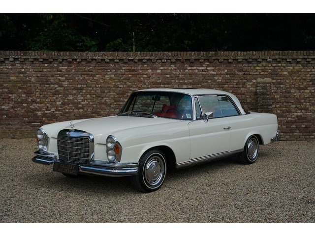 Het betreft hier een zeer originele Mercedes-Benz 280SE Coupé 3.5 Coupé uit de W111 generatie. De auto komt uit 1970 en is nieuw geleverd in Europa. De auto is door de eerste eigenaar besteld in een prachtige kleurencombinatie bestaande uit een prachtig wit exterieur met een met rood leder en rode tapijten bekleed interieur. De auto is daarnaast voorzien van een automaat en een schuifdak. Het is dus goed toeven in deze statige Duitse opper-coupé.