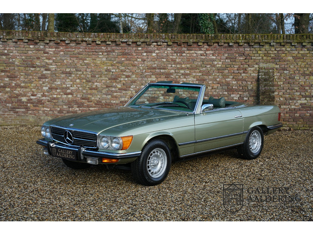 Bestel toch eens een kleurtje! Dat moet de eerste eigenaar van deze schitterend samengestelde R107-generatie Mercedes-Benz 450SL hebben gedacht. Wat een heerlijke combinatie van kleuren. De samenstelling bestaat uit een “Thristle Green” exterieur en een met groene tapijten, een lichtgroen dashboard en groene lederen bekleding. Het is werkelijk een schitterende combinatie. De kleur wordt versterkt door de zwarte cabrioletkap. Het betreft hier een auto uit 1973 die nog is voorzien van de fraaie klassieke bumpers, het jaar erop werden de bumpers maar liefst 8 centimeter langer om te voldoen aan de strenger geworden eisen voor botsveiligheid. Dat deze Mercerdes-Benz nieuw is geleverd in de Verenigde Staten is niet zo verwonderlijk. Maar liefst twee derde van de volledige productie werd in de VS verkocht. Ten tijde van de R107 werd de SL zelfs omschreven met de meest heerlijke Amerikaanse omschrijving ooit. Het was een “personal luxury car”, geen idee wat zulks precies inhoudt maar er hangt wel een zweem van succes omheen.