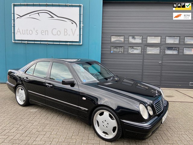 Unieke prachtige 22 jaar afgemelde Mercedes Benz E-klasse 50 AMG Avantgarde 347 pk Automaat met zwart vol leder interieur met stoelverwarming en memory, originele 18 inch Amg lm velgen breedset voor 235 achter 265, climate control, cruise control, middenarmsteun, elec stuurkolom, stuurbekrachtiging, originele radio, leder stuur, xenon verlichting met koplampsproeiers, hoofdsteunen voor en achter, elec ramen voor en achter, traction control ESP, elec buitenspiegels, elec stoelverstelling, centrale vergrendeling op afstand, boardcomputer, mistlampen voor, metallic lak, elec hoofdsteunen, leder stuur, elec zonnescherm achter, getint ww...