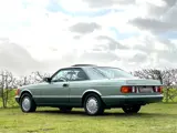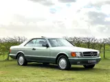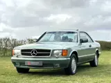Mercedes-Benz 560 SEC W126 uitgevoerd in de zeer zeldzame kleurstelling Nelken Grün metallic met groen lederen interieur. Origineel aantoonbaar 78.000 km !