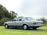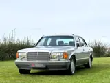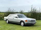 Prachtige Europese Mercedes-Benz 560 SEL W126 in de frisse kleur Astral Silber met donkerblauw lederen interieur.