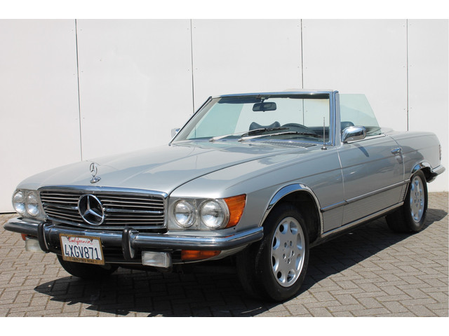 Mercedes-Benz SL met de krachtige 450 8 cilinder motor! Betreft een model met de gewilde smalle bumpers welke verkeert in een zeer goede conditie. Carrosserie zeer strak, goed verzorgd en gespoten in zilvergrijze metallic lak. De originele hardtop is aanwezig evenals de softtop. Wordt geleverd met Amerikaanse registratie title en invoerdocumenten, wij hebben de import belastingen reeds voldaan.