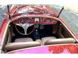 De MGA is professioneel nieuw gespoten in de correcte kleur "Chariot Red" en de lak ziet er heel mooi uit met een diepe glans. Spuitwerk op hoog niveau. Het verschil tussen een goed of perfekt gespoten auto zit vooral in de tijdrovende en kostbare voorbereiding. Je ziet aan alle details dat het hier gaat om een uitstekende restauratie. De fraaie mohair kap, de sidecreens en de tonneaucover, alles is nieuw, mooi en snaarstrak. Ook de aluminium deurtjes sluiten heel mooi en alle naadjes zijn correct.
