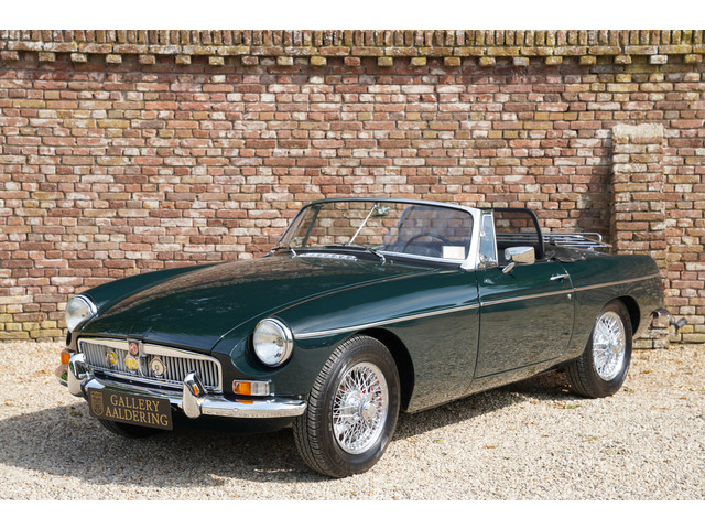 MG B Roadster Mk2 "Restored condition" After restoration very well maintained and preserved, In the characteristic British Racing Green, Genuine left-hand drive and European version, Equipped with chrome 72-spoke wheels - luggage rack and windshield, Restoration documented with photos, Ready to be used and enjoyed,