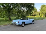 De B is professioneel overgespoten in de originele MG kleur "Iris bleu" en de kwaliteit van het spuitwerk is uitstekend. De kleur is schitterend en geeft de MG extra sixties flair. Er zijn nauwelijks gebruikssporen en dat is een groot compliment bij een oudere restauratie. Ook dankzij de verchroomde spaakvelgen ziet de auto er prachtig uit. De bumpers hebben een lichte patina, maar de rest van het chroom ziet er bijna als nieuw uit. De kap is recent vernieuwd inclusief beugels en zit snaarstrak. De ruitjes zijn mooi helder en er is een tonneaucover aanwezig. De voorruit heeft groen getint glas, en dat is rustgevend voor je ogen.