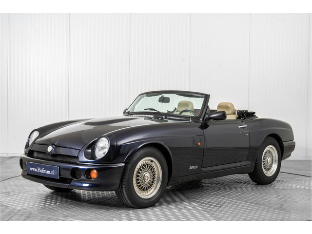 Deze donkerblauwe MG RV8 is een bijzondere Britse roadster die liefhebbers aanspreekt door zijn klassieke uitstraling en krachtige V8-motor. Van de MG RV8, zijn wereldwijd slechts 1.983 exemplaren gebouwd, waarvan het merendeel bestemd was voor de Japanse markt 1579 direct verscheept naar Japan en kregen 300 stuks een thuis in het Verenigd Koninkrijk, de rest van de wereld moest het met 104 exemplaren doen. Van deze bijzondere uitvoering in de kleur Oxford Blue zijn er slechts 258 exemplaren geleverd. Dit is een parelmoerachtige, diepe navy-blauwe tint die exclusief voor de RV8 werd gebruikt.