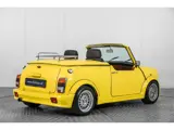 Een bijzondere verschijning is deze Mini, als Cabrio uitgevoerd . In 2000 is dit exemplaar kompleet gerestaureerd en is de body vervangen door een origineel Rover cabrio exemplaar. Tevens is destijds de motor gereviseerd en zijn er 13 inch velgen gemonteerd. De body is gespoten in een Citroen gele kleur (kleur code: EBT). De remmerij is rondom vernieuwd en zijn er twee Recaro stoelen gemonteerd. In 2008, bij 68370 kilometer, is de cilinderkop nog gereviseerd. Voorzien van een RVS uitlaat, houten dashbord en stuurwiel, lichtmetalen velgen en schijfremmen op de voorwielen. Het was een revolutionaire en karaktervolle kleine auto die voor de British Motor Corporation (BMC) was ontworpen door Alec Issigonis (1906-1988) en die gemaakt werd in Birmingham. In deze auto werden voor die tijd nieuwe vooruitstrevende technieken toegepast, zoals een dwarsgeplaatste motor en voorwielaandrijving, een concept dat tegenwoordig veelvuldig wordt toegepast. De Mini was leverbaar met motoren van 850, 1000 en 1275 cc en in vele uitvoeringen. In 2001 presenteerde BMW, dat inmiddels eigenaar was van de merkrechten, een geheel nieuw ontworpen auto: de "New MINI".