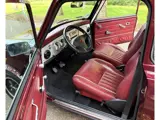 Het 40th anniversary interieur is heel mooi en goed verzorgd. De prachtige donkerrode leren bekleding is helemaal origineel en heeft slechts enkele gebruikssporen. Het aluminium geborstelde dashboard is heel fraai en voorzien van 6 Smiths klokken met chromen randjes. De bovenkant van het dashboard heeft een leren bovenkant. Ook leuk is de aluminium Cooper pookknop en donkerrode pookhoes. Recent is er een uitstekende Sony radio-CD speler gemonteerd met Pioneer hoedenplank speakers, dashboard speakers en een Kenwood subwoofer. Klinkt super.