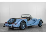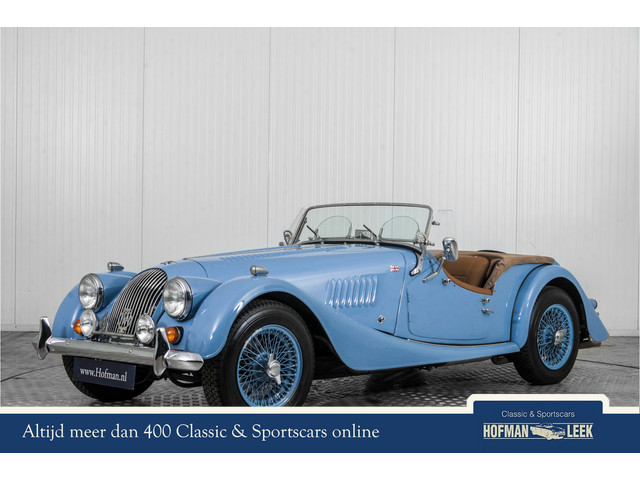 Op en top Engels, dat kun je deze Morgan zeker noemen. Handgemaakt in Malvern UK waar men nog altijd deze auto’s bouwt. Ondanks het klassieke uiterlijk is deze roadster wel degelijk voorzien van moderne techniek. De 1600 cc Ford Kent motor zorgt voor betrouwbaarheid en stuwt de 780 kg zware 2 zitter met gemak voort. Betrouwbare techniek in een klassiek jasje; de perfecte combi! Ons exemplaar is gebouwd in 1979 en werd in Engeland uitgeleverd. Hij kwam in 2000 naar Nederland. De auto valt op door zijn mooie opties en zijn speciale licht blauwe kleur. In Nederland heeft de Morgan 2 eigenaren gehad, welke hem perfect hebben onderhouden. De mile stand van 64900 is hem nauwelijks aan te zien en de auto staat dan ook klaar voor nog vele jaren rijplezier. Tot de opties behoren o.a. brede spaakwielen, Motolita stuurwiel met aluminium naaf en naafkap, verstelbare voorruit , Brooklands raampjes, overriders, sportuitlaat, bruin lederen stoelen met bruine piping . Een perfecte combinatie in zeer goede staat.