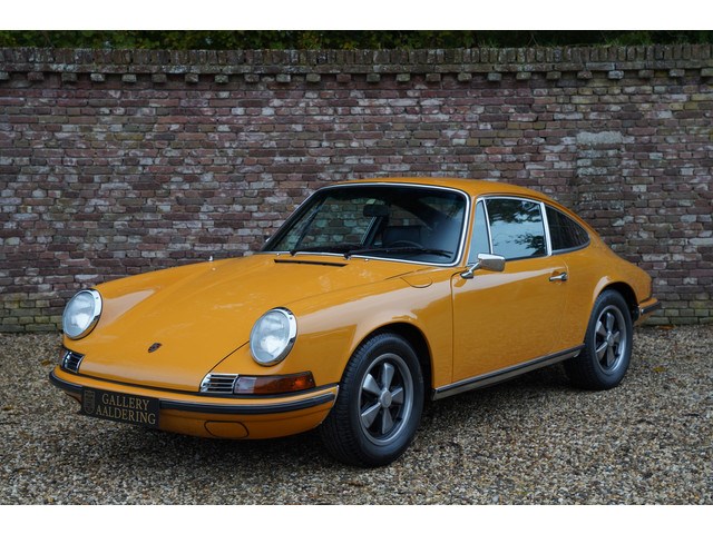 Deze Porsche 911 T Coupe uit 1969 is een uiterst verzorgd en goed onderhouden exemplaar in de geliefde kleurstelling “Bahama Yellow” met een zwart leren interieur. De auto is uitgerust met een 5-versnellingsbak, Bursch-uitlaatsysteem en originele Fuchs-velgen. Deze Porsche werd oorspronkelijk geleverd in Californië als een “black plate” auto, en beschikt nu over een Duitse registratie. De Porsche "Certificate of Authenticity" bevestigt dat dit model matching numbers heeft, wat deze 911 extra bijzonder maakt.