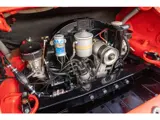 De Porsche presenteert zich in Polo Red, een kleur die uitstekend past bij het ingetogen lijnenspel van de vroege 911 en 912 carrosserie. In combinatie met het zwarte interieur en de sportieve Recaro stoelen ontstaat een uitstraling die volledig aansluit bij de periode waarin deze auto werd samengesteld.