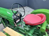 Deze tractor uit onze collectie bevindt zich in gerestaureerde staat en wordt geleverd met de originele Duitse registratiepapieren, wat een bijzondere meerwaarde biedt voor verzamelaars. Zijn authentieke details, van de lak tot de constructie, maken dit exemplaar een unieke aanvulling op elke verzameling of als decoratieve blikvanger in een nostalgische setting.