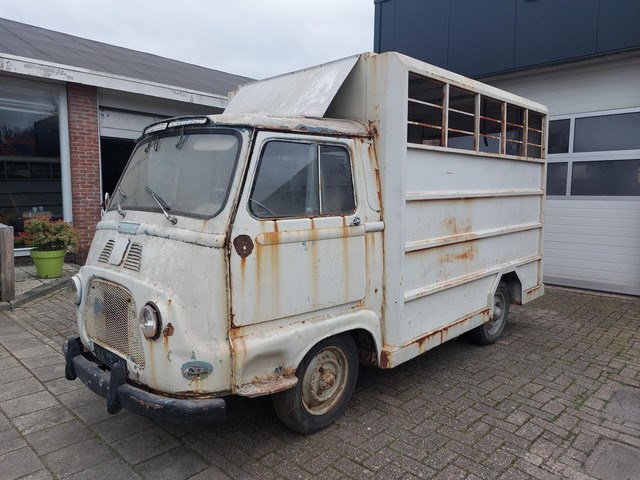 Deze knetterharde Renault Estafette uit 1959 leent zich er allemaal voor. Hij is al geruime tijd aan het uitrusten, dus heeft motorisch liefde en aandacht nodig. Op dit moment wil hij helaas nog niet starten.