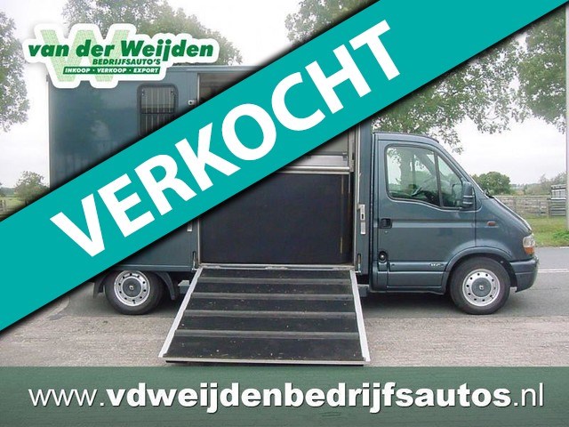 Master 2.8D Veewagen, 2.799 cm3., 4 cylinder, 2.390 kg., 84 PK., 114 PK., laadvermogen 1.110 kg., WB 408 cm., Nationale autopas tellerrapport aanwezig, distributieriem vervangen bij 122.656 km.,!!, airbag bestuurder, 3 persoons met hoofdsteuntjes, Pioneer radio/cd speler, toerenteller, 2 camera's in de laadruimte en achteruitrij camera, parrot, 3e remlicht, trekhaak, zadelkast, onderhoudshistorie, opstapje achter, het betreft een JWR Horsetrucks uit Ede opbouw die overzetbaar is op een ander chassis! Prijs is marge (komt geen b.t.w. meer bij!)