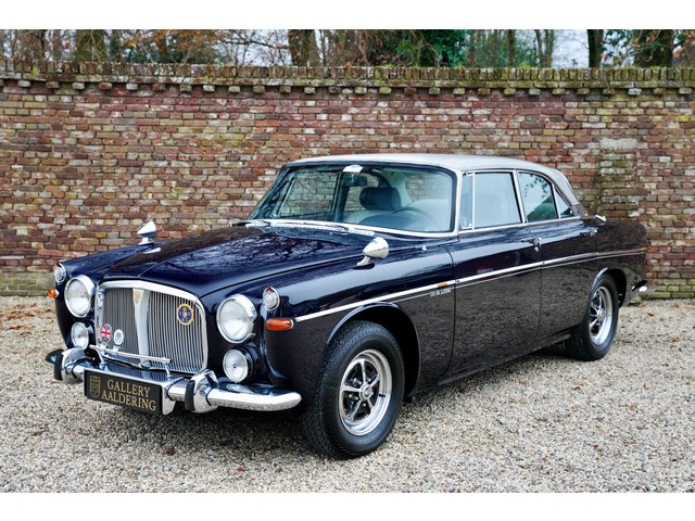 Deze Rover P5B Coupé 3.5 Litre uit 1970 is een origineel links gestuurd exemplaar, en een zeldzaamheid onder de P5B’s, dat nieuw werd geleverd in Zwitserland bij de bekende Emil Frey Garage. Deze Rover, uitgevoerd in de klassieke kleurstelling “Admiralty Blue” met een dak in “Silver Birch”, straalt pure klasse uit en verkeert in nette staat dankzij de nodige zorg en specialistisch onderhoud.
