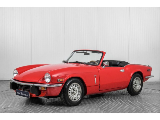 Mooie en goed verzorgde Triumph Spitfire van bouwjaar 1975. Nieuw werd deze geleverd in Amerika Californie, Aan de auto is te zien dat hij altijd in het mooie roestarme Californie heeft gereden. Heeft sinds het jaar 1992 een Nederlandse registratie. Hier alleen gebruikt met mooi weer. Onder de kap ligt een sterke 1500 cc motor gekoppeld aan een soepel schakelende vierversnellingsbak een mooie techniek welke beschikt over voldoende vermogen. Hier in het verleden body off gerestaureerd, uitgerust met een mooie dubbele RVS uitlaat, Koni schokbrekers, houten dashbord.