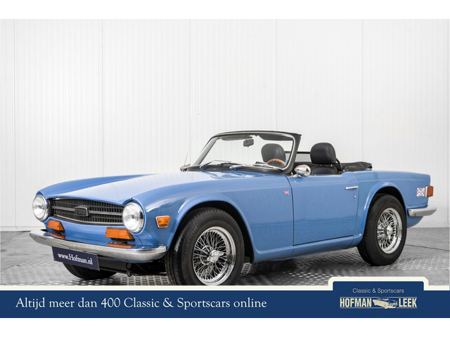 Laatste eigenaar heeft de auto sinds 2003 in het bezit gehad. Onlangs voorzien van nieuwe chroom velgen met naven en moeren. Voorzien van dubbele SU carburateurs en een RVS sportuitlaat. Uitgevoerd in de mooie pastel kleur Wedgewood Blue. Rijd, loopt en schakelt perfect . De Triumph TR6 is een iconische Britse roadster die van 1968 tot 1976 werd geproduceerd door Triumph Motor Company. Het model bouwde voort op de technische basis van zijn voorgangers (de TR4 en TR5), maar kreeg een compleet nieuw uiterlijk van de Duitse carrosseriebouwer Karmann. Het resultaat: een klassiek ogende tweezitter met gespierde lijnen, sportieve prestaties en een rauw karakter dat perfect paste bij de jaren 70.