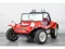 Deze rode Kever-buggy met witte velgen is een pure fun-auto, gebouwd op het betrouwbare onderstel van de klassieke Volkswagen Kever met achterwielaandrijving. Onder de lichte, open buggy-carrosserie ligt de beroemde luchtgekoelde viercilinder boxermotor achterin, simpel van opzet, goed bereikbaar en geroemd om zijn degelijkheid en karakteristieke geluid. Het lage gewicht in combinatie met deze onverwoestbare Kever-techniek zorgt voor een levendig rijgedrag en een directe, ouderwets mechanische rijbeleving die perfect past bij het speelse uiterlijk van deze buggy.