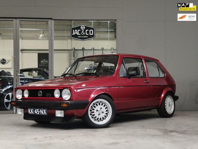 Wat een gave bak! De basis was een orineel Nederlandse VW Golf, die door een enthousiasteling met veel liefde, geduld, tijd en geld, omgebouwd is naar een GTI MK1. De originele motor is vervangen door een 1.8 injectie motor inclusief de 5-bak. Tevens is het gehele onderstel, inclusief remmen aangepast. Tijdens de modificatie zijn de meeste slijtage delen vervangen, dus nieuwe waterpomp, distributieriem, koppeling met drukgroep en lager, dynamo met aandrijfriem, accu, 4x banden, uitlaat en natuurlijk alle oliën, filters en bougies. Hij loopt prachtig mooi rond en klinkt heerlijk donkerbruin. Door de lichte carrosserie en de smeuïge 112 pk, voelt de auto lekker vlot aan. De auto is zowel van buiten als van binnen in zijn originele bordeaux rode kleur gespoten. Hierbij zijn tevens de voorspatborden en achterste wielkasten vervangen. Een uitgebreide fotoreportage is voorhanden. De zwarte kunststof kappen voor de spatborden zijn nog niet gemonteerd en liggen nog nieuw in de verpakking, hierdoor heb je een goed beeld op de hardheid van de carrosserie. Om het GTI-plaatje kompleet te maken zouden de stoelen en achterbank nog vervangen moeten worden. Maar het huidige interieur verkeerd nog in een prachtige staat. Kortom, wie wordt er gelukkig van een stoere VW Golf GTI MK1 en dat alles voor 50% van de prijs van het origineel? Kom maar eens een keer kijken, maar wacht niet te lang want voor deze prijs is er geen mooiere, hardere Golf binnen Europa te koop.