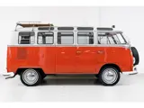 De T1 Samba staat bekend om zijn unieke ontwerp. Een gedeelde voorruit, een V-vormig front en een opvallende tweekleurige lak met een gedurfde, contrasterende streep. Het interieur van dit prachtige exemplaar is ruim en uniek. Vroeger was het een populaire keuze voor gezinnen, surfers en jawel, de hippies. Gelukkig biedt hij veel hoofdruimte met zijn 21 ruiten voor dampende preisigaretten. Vandaag de dag is het een mooi exemplaar voor elke avonturier en liefhebber.