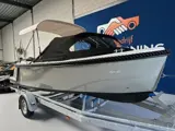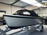 Er hangt nu een 30 PK Suzuki motor achter maar desgewenst kan er tot 60 Pk achter.