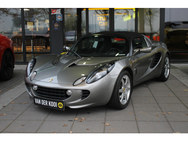 Echt in perfect verkerende staat, Lotus Elise S 1.8/ 136 PK, in de mooie kleur Storm Titanium, met donker rood lederen sportstoelen.