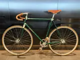De kleurstelling is een directe verwijzing naar de iconische Lotus-historie: British Racing Green gecombineerd met een zachte crème-kleur en gouden logo’s. De afwerking met het Brooks Swift Tan Leather zadel en bijpassend lederen stuurtape is een bewuste keuze; het weerspiegelt de luxe lederen interieurs van de Lotus-sportwagens uit die tijd.