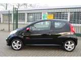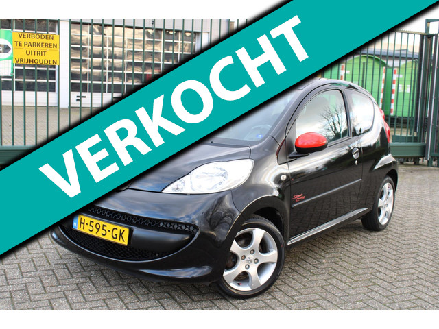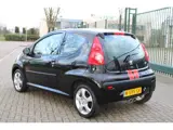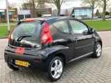 Keurige Peugeot 107 1.0-12V. Deze sportief uitgevoerde 107 word gekenmerkt door zijn diverse rode accenten en een dubbele uitlaat.