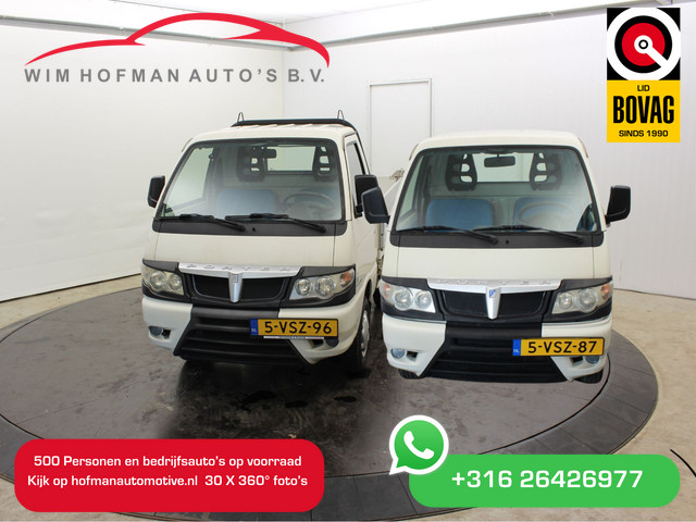 Twee Piaggio Porter Pick-up Extra Electric wagens. Eén heeft een kapotte accu en de ander heeft helemaal geen accu. Beide voertuigen zijn elektrisch en compact, ideaal voor gebruik in de stad of op eigen terrein. Ze zijn niet rijklaar en worden verkocht in de staat waarin ze nu verkeren. Perfect voor iemand die handig is of op zoek is naar een project of onderdelen.