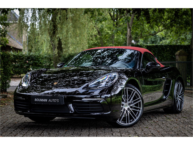Fraaie Porsche Boxster 718 in handgeschakelde uitvoering. Deze auto is door ons in Duitsland aangekocht van de eerste eigenaar. De volledige Porsche dealer onderhoudshistorie is aanwezig. Lakkleur is Schwarz en het interieur is voorzien van sportstoelen in Achatgrau. De cabrioletkap is uitgevoerd in rood. Het 20" Turbo wiel versterkt de dynamische uitstraling van de auto.