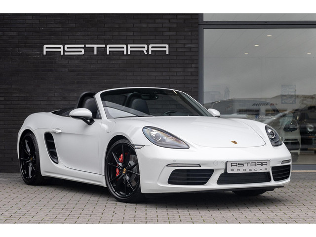 Porsche 718 Boxster S uit 2016, uitgevoerd in wit met een zwart vollederen interieur.