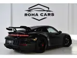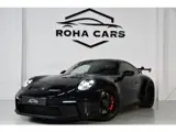 Je opent de deur en wordt begroet door die pure, kale intentie: carbon kuipstoelen, strak als een raceoverall. De 6-punts gordels hangen klaar, alsof ze fluisteren dat je vandaag niet gewoon gaat rijden, maar gáán. De halve rolkooi achter je is geen accessoire, maar een statement: dit is geen 911 voor mensen die een 911 willen. Dit is een GT3 voor mensen die begrijpen wat een GT3 betekent.