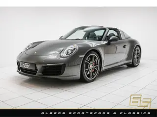 Deze Porsche 911 (991.2) Targa 4S is uitgevoerd in de stijlvolle kleur Achatgrau Metallic. De karakteristieke Targa-beugel en het zwarte mohair stoffen dak benadrukken het tijdloze design. Verder is de auto uitgerust met LED-koplampen, 20 inch Carrera S-velgen in Platingrau Matt en een Sportuitlaat die het sportieve karakter extra kracht bijzet. De raamlijsten en sierlijsten zijn uitgevoerd in zwart, wat het sportieve en strakke uiterlijk versterkt.