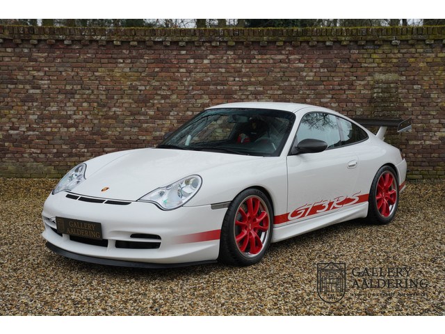 Deze schitterende RS uit 2004, geleverd in wit met rode details en rode wielen is één van de slechts 682 RS'en. De auto verkeert in een uitmuntende staat en heeft slechts 39.000 kilometer gereden. Een unieke kans om een GT3 RS te bemachtigen, auto's in deze conditie worden slechts zelden aangeboden. De auto ziet eruit alsof hij net de showroom uit is komen rijden en de techniek is perfect bijgehouden, zonder ook maar enige concessie te hebben gedaan aan de onderhoudsinterval of werkzaamheden.