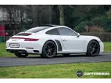 Een 991 MK2 blijft een heerlijke verschijning, met zijn net wat scherpere lijnen dan de eerste serie. Die vallen des te meer op in een lekker kleurtje zoals deze Carrera wit metallic. Door zijn vierwielaandrijving heeft hij bredere achterschermen, die worden geaccentueerd door de rode lichtbalk, die brandt en de zwarte stickers op de achterschermen, geven hem een stoere look. De zwarte sportuitlaat, aanduiding achterop en zelfs de wielen en koplampen in het zwart,...