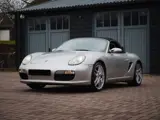 Te koop aangeboden: een Porsche Boxster 987 uit 2005, uitgevoerd in Arctic Silver Metallic en gecombineerd met de originele zilverkleurige OEM Porsche Carrera S II 19-inch velgen. De kleurstelling geeft de Boxster een tijdloze en klassieke uitstraling.