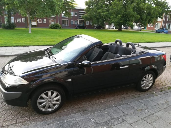 Te koop een schitterende Renault Megane 1,6- 16 V Cabriolet Tech Line facelift bouwjaar 2006 en de km stand van 277800, altijd goed onderhouden. De auto is uitgevoerd in diamantzwart metallic, zwart/grijs gemeleerd stoffen interieur, 4 hoofdsteunen, 4 elek ramen, 2 elek spiegels, cruise controle,airco met climate controle,stereo radio cd speler centrale portiervergrendeling en alarm via de sleutelkaart, prachtige sportvelgen met 4 nieuwe winterbanden,licht sensor, regen sensor, windvang rek op de achterbank, ,elektrisch bedienbare stalen cabriolet kap, ook uitstekend voor de winter geschikt, LPG G3 onderbouw installatie voor zeer voordelig rijden,met 27,50 euro volle tank 465 km rijden.De auto is in een smetteloze staat van binnen en van buiten,nooit in gerookt, geen krassen of deuken,uitstekend onderhouden, jaarlijks kleine beurt, distributie snaar is vorige week vervangen met pomp, APK tot 15-02-2021 Prijs 3200 euro licht onderhandelbaar.