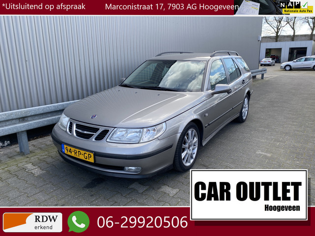 WIJ ZIJN ALLEEN OPEN OP TELEFONISCHE AFSPRAAK. Goed Rijdende Saab 9-5 Estate 2.0t Linear Business Pack met o.a. Automatische Klimaatregeling, Cruise Control, Park Distance Control, Origineel Licht Metaal, Trekhaak en nieuwe APK. Inruil is uiteraard bespreekbaar.